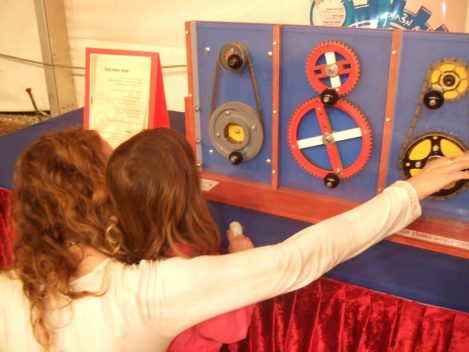 התערוכה מתחילה במתקן הממחיש את תהליך המצאת הגלגל על ידי השומרים ועוברת להמצאת הגלגלת על ידי ארכימדס.